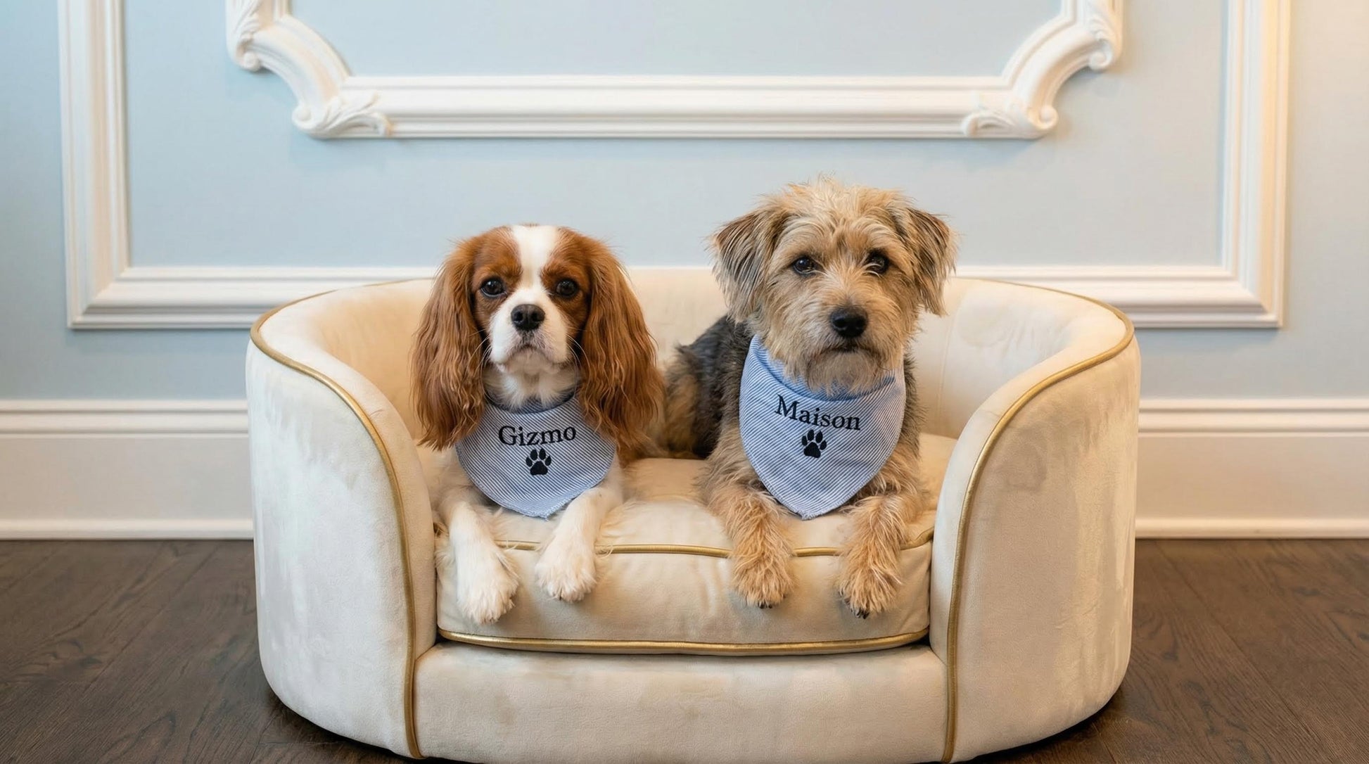 Elevate your pet's style with our custom embroidered bandana! The 100% cotton material makes it great for any season, large sizing fits up to neck size of 23". *Please make sure to leave room to tie a knot when measuring.