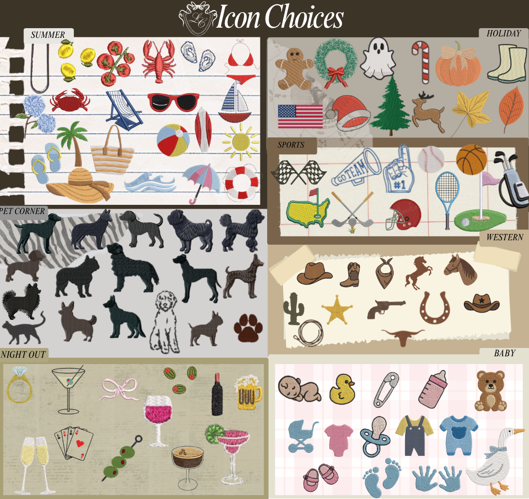 Please enter your initials or text (up to 12 characters) exactly how you'd like it to appear on your bag in the Custom Text section. Please note that text size and placement is dependent upon your character length. If you have any special requests — such as placement preferences, icon color changes, or other notes — please include those in the Customization Comments section. We will always do our best to accommodate these requests, but please note that specific adjustments can’t be guaranteed depending on design and material.